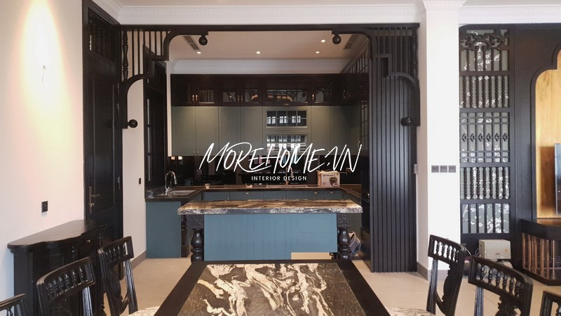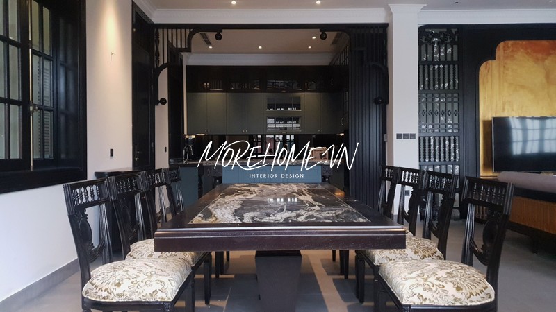 Nội thất Indochine là sự kết hợp tinh tế giữa nét đẹp văn hóa Á Đông truyền thống và phong cách kiến trúc Pháp cổ điển, tạo nên một không gian đầy chất thơ và đậm đà bản sắc. Với những gam màu trung tính như trắng, vàng kem, và nâu gỗ tự nhiên, nội thất Indochine mang lại cảm giác ấm cúng, gần gũi nhưng vẫn toát lên vẻ sang trọng. Đặc trưng của phong cách này là các chi tiết chạm khắc tinh xảo, họa tiết hình học, và sự xuất hiện của chất liệu tự nhiên như gỗ, mây, tre, kết hợp hài hòa với gạch bông mang họa tiết truyền thống.