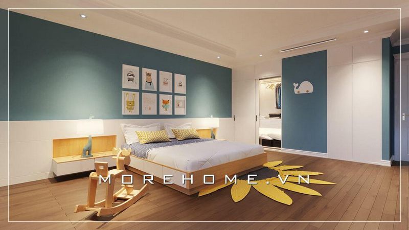 Mẫu thiết kế phòng ngủ trẻ em đơn giản, hiện đại, nội thất được tối giản nhất chỉ tập trung vào công năng sử dụng mang lại không gian thoáng hơn, không quá gò bó, bí bách