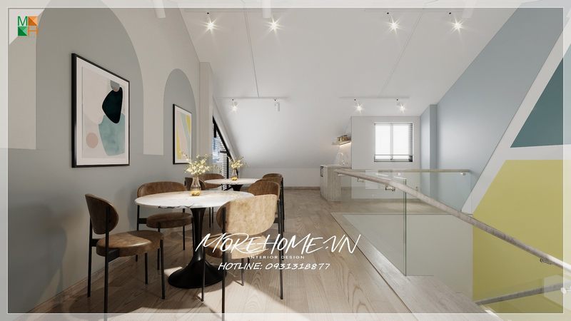 Đem tới không gian nhà ăn văn phòng sự năng động trẻ trung với những bức tường được sơn màu sắc tươi mới hiện đại đem lại sự thoải mái cảm hứng làm việc cao