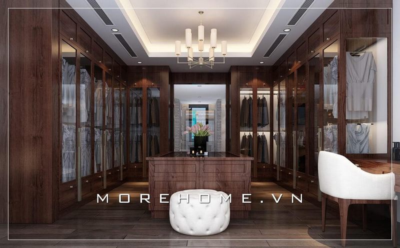 Phòng thay đồ của gia chủ trở lên thời thượng với mẫu tủ quần áo cánh kính hiện đại màu trắng giúp không gian thoáng hơn, tạo cảm giác rộng rãi hơn
