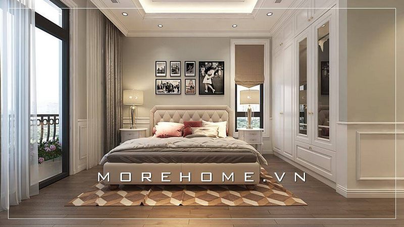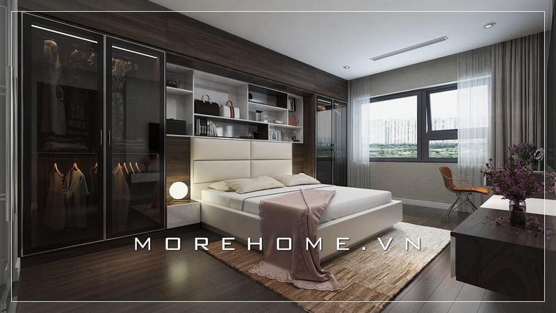 Thiết kế tủ quần áo gỗ kết hợp cánh kính hiện đại mang đến sự sang trọng cho không gian phòng ngủ Master chung cư cao cấp